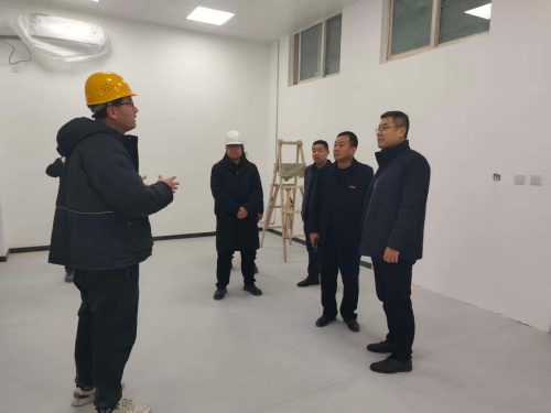 在分析测试中心建设现场,王鹏查看了接地电阻建设的施工情况,并逐个查看每个房间施工情况,听取了施工方